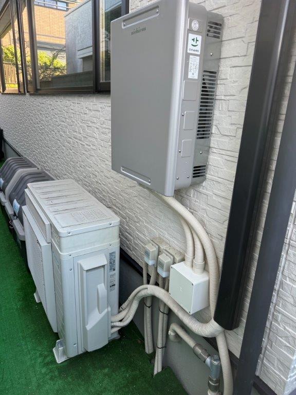 壁の色に合わせて配管などの色も落ち着いた色で施工させていただきました。